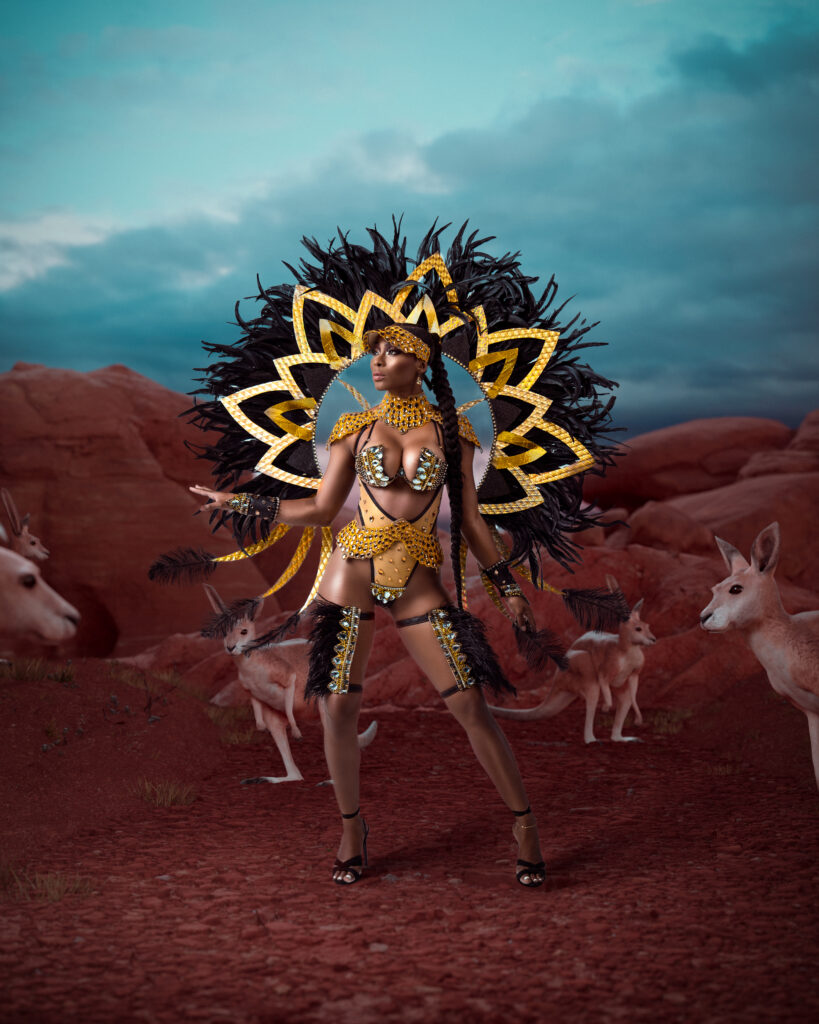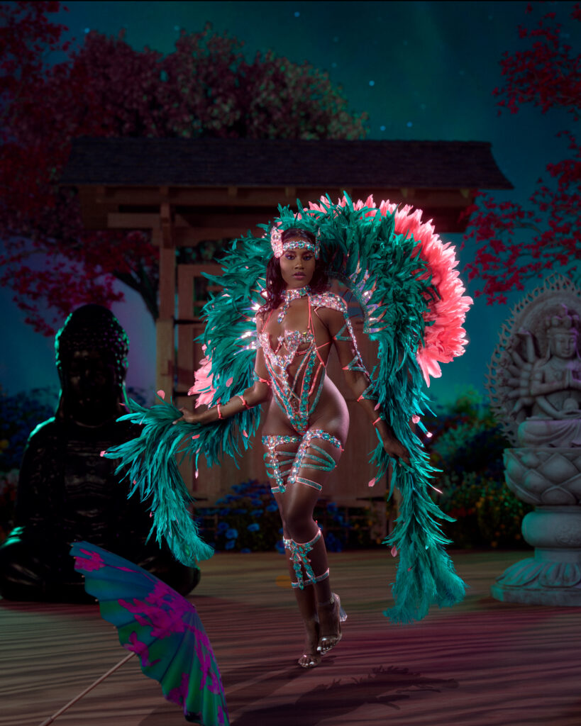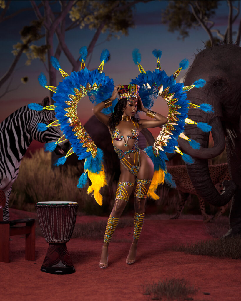 “We just did a recent project with G-CREWS, which is the water conservation project. We helped them with masqueraders saving water, we contributed to St. Vincent when they had the volcano. We try to give back in whatever way. I’m big on humanity and helping people. I feel like we’re all one day or one step or one hour away from being in predicaments…The mas part? I love mas. I want to play mas, so when I have a band that delivers, giving back at the end? That’s really my baby. My team knows how much it means to me.”